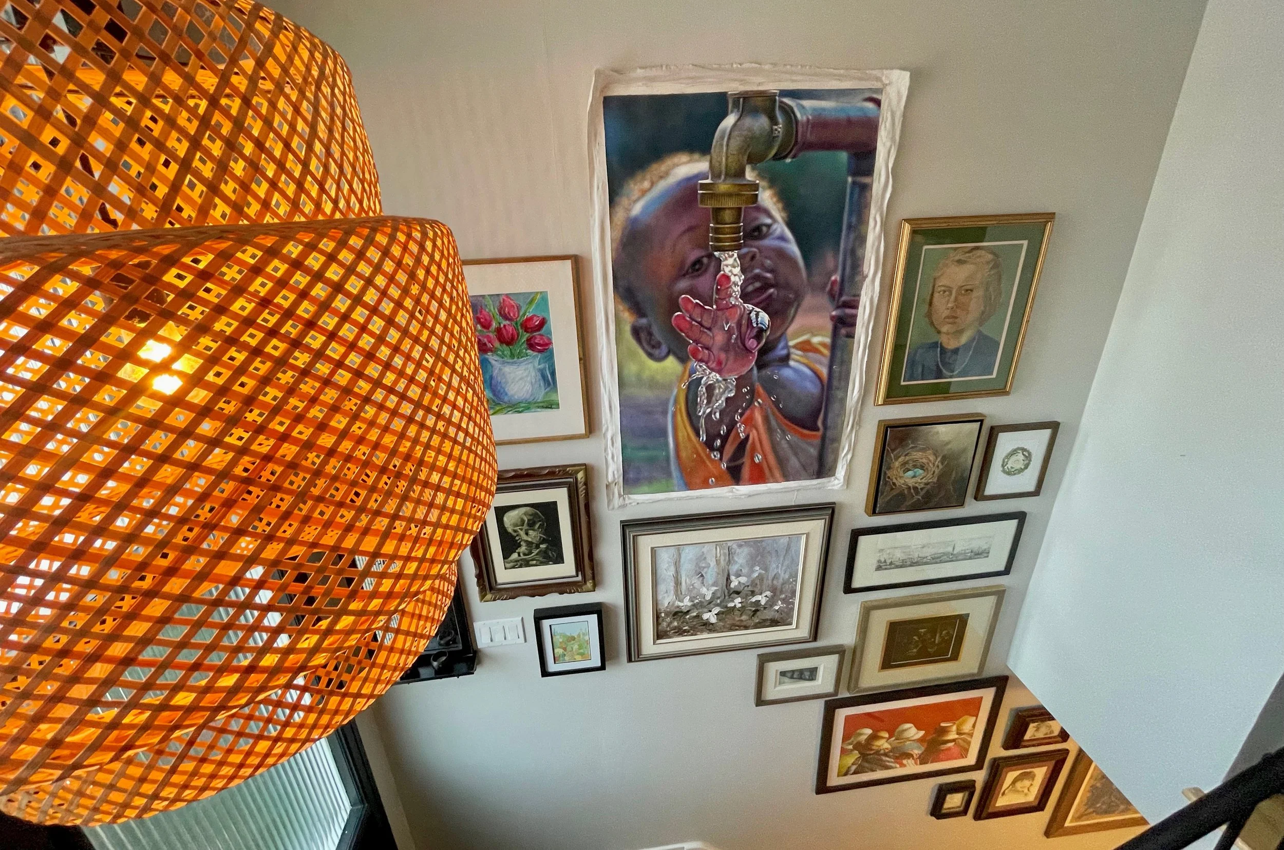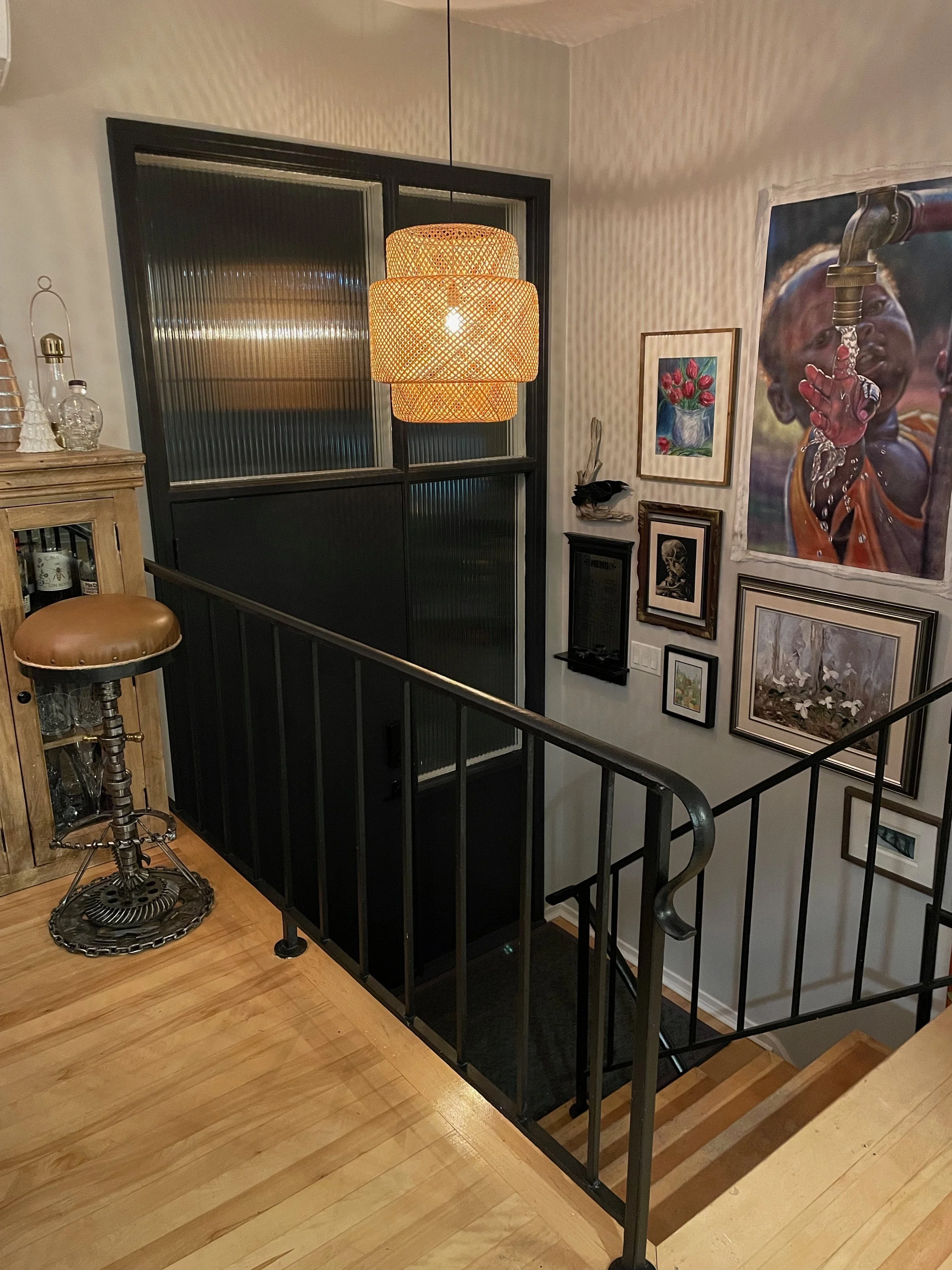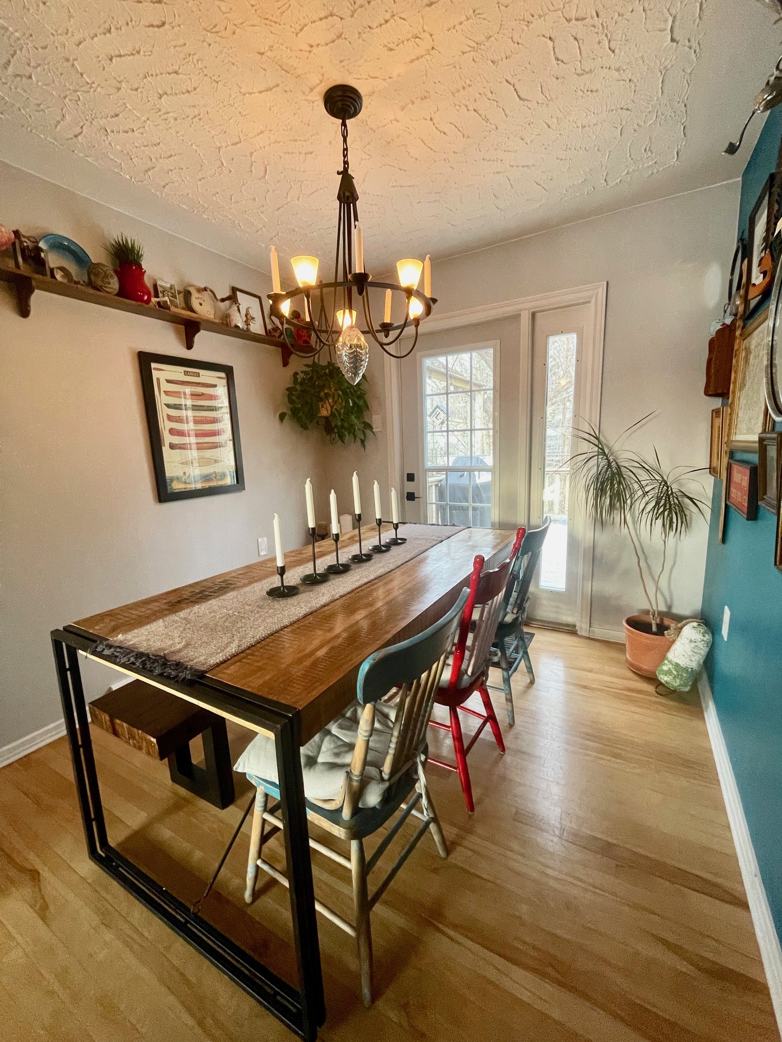 With a love for art and an eclectic aesthetic, the homeowners embraced bold design choices. Their collection is extensive, but wall space was limited, so we curated standout art accent walls—one in the entryway and another in the dining room—to display their favourite pieces in a visually compelling way.