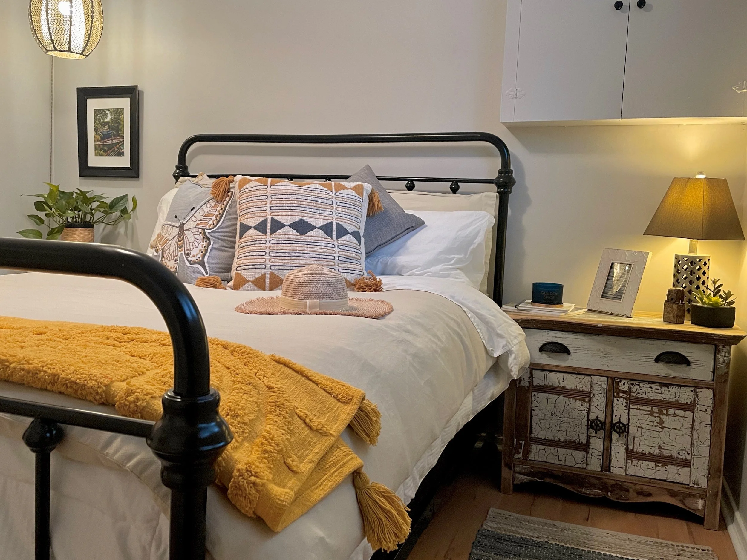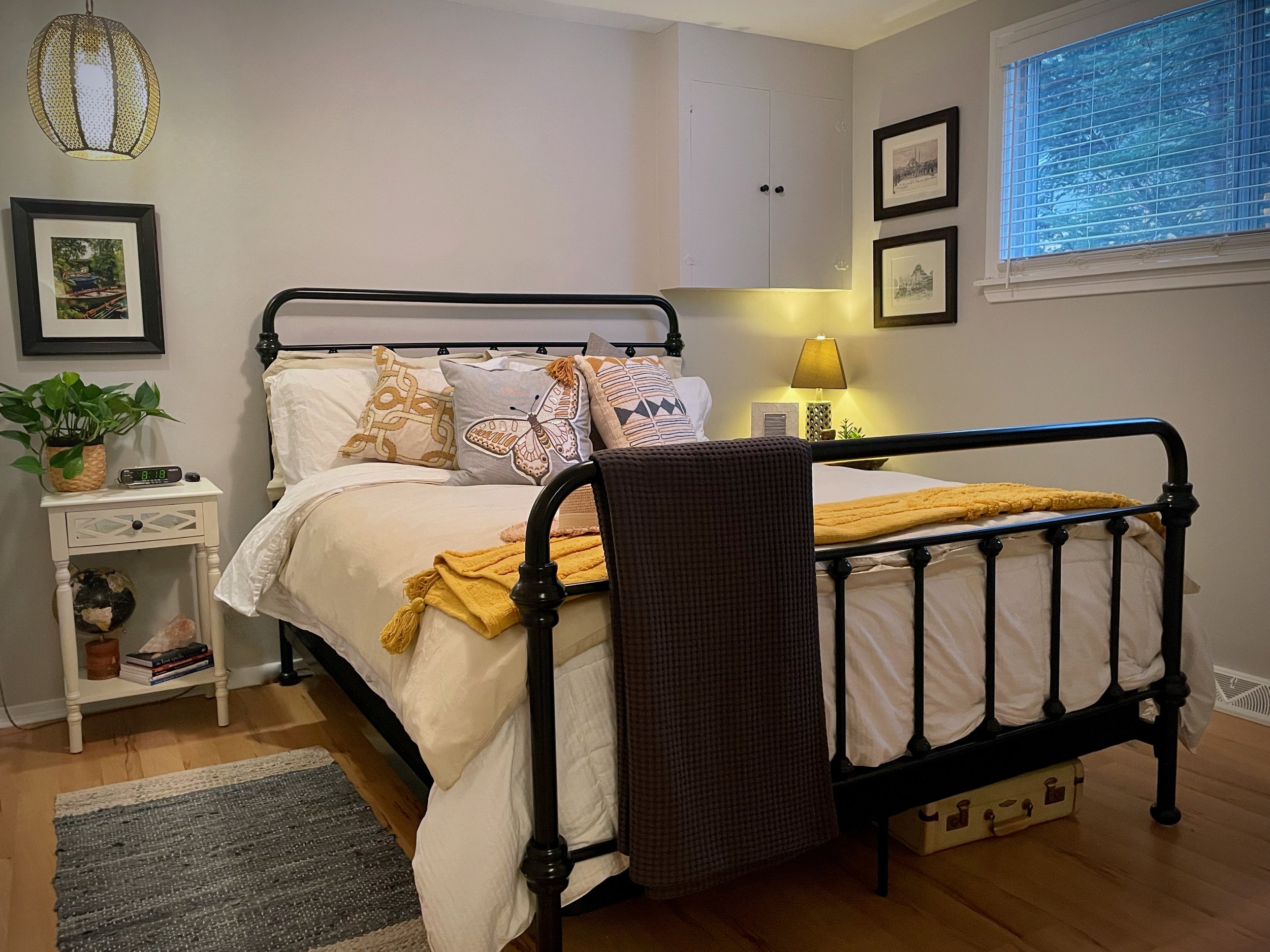 This mid-century modern home transformation was all about making the most of what was already there. As first-time homeowners, the couple wanted to create a warm, cohesive, and welcoming space while working within a manageable scope. With a thoughtful approach, we focused on impactful yet budget-friendly updates—fresh paint, upgraded lighting, new hardware for doors and cabinets, custom closet systems, and select flooring updates. A larger renovation is planned for the future, but for now, the goal was to enhance the existing space with smart, stylish changes.